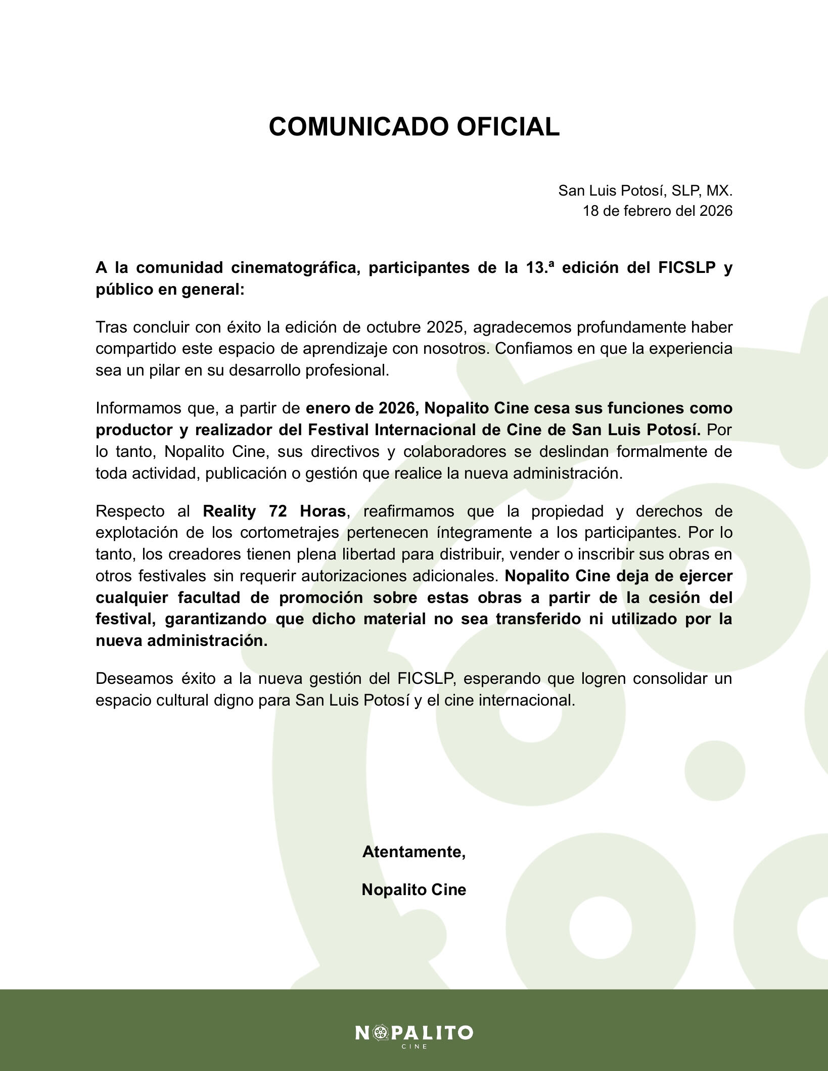 A nombre de Nopalito Cine, agradecemos a todos los participantes que con alegría dieron lo mejor de sí, demostrando que en San Luis Potosí hay talento y pasión por el cine.Los invitamos a que nadie los detenga y que luchen por sus sueños. Que esta generación destaque por su unidad y por dejar cualquier diferencia fuera del set.Con mucho cariño, les compartimos las fotos y videos de este gran encuentro. Esperamos que esta edición del FICSLP sea recordada como la mejor. ¡Nopalito Cine la hizo con amor para todos ustedes!